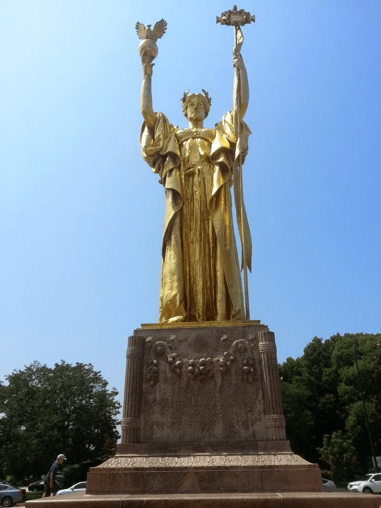I am especially excited about working on the “Leaning Into The Future “ paper, because it is my effort to respond to the work of the Chicago Monuments Project (CMP) that may reshape the public spaces of the city that I grew up in. (The paper will be part of a forthcoming edited volume on Monuments and Memory). One of my favorite statues discussed in the report by the CMP–and in my paper–is Daniel Chester French’s statue of “The Republic” (installed in 1918 in Jackson Park, Chicago as French’s recreation of an earlier statue–destroyed by fire–that he had created for the 1893 World’s Columbian Exposition.)